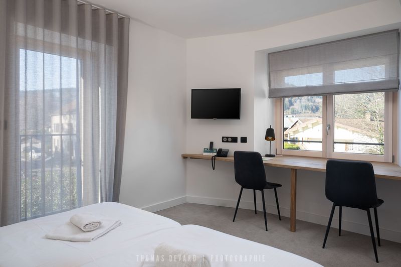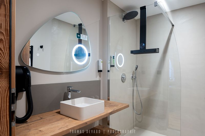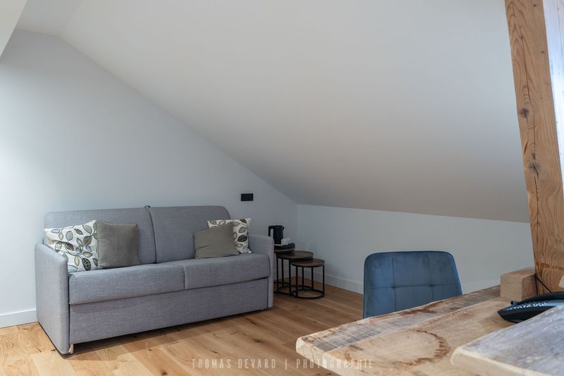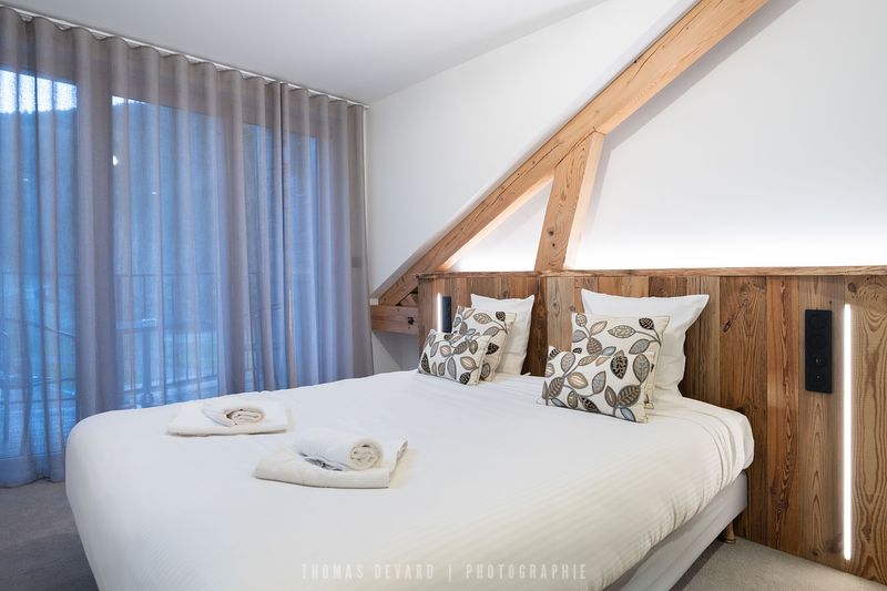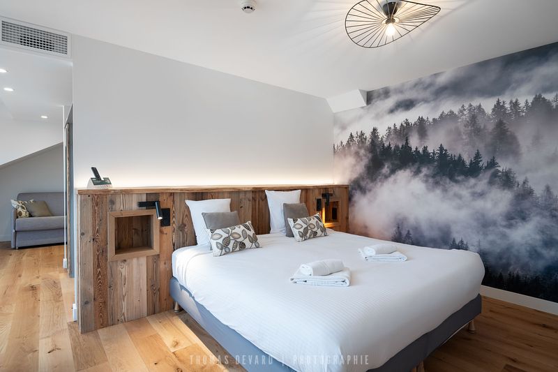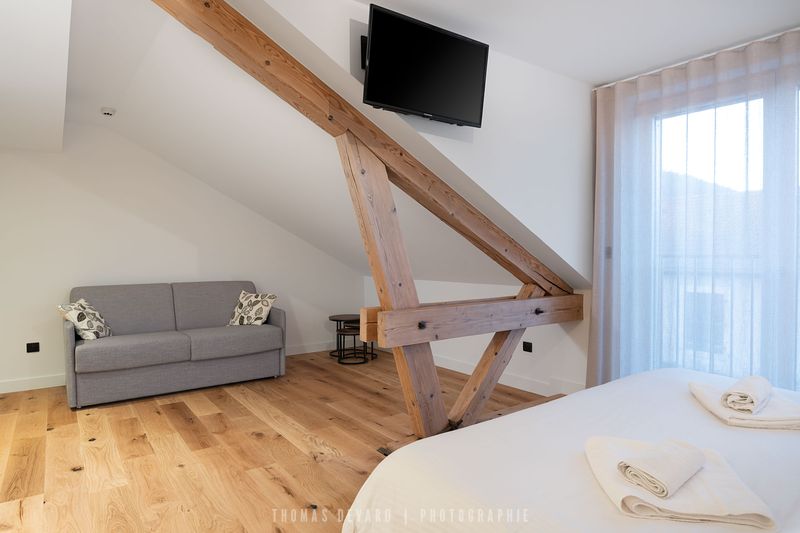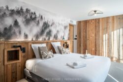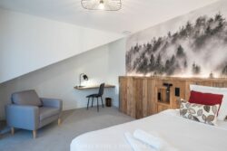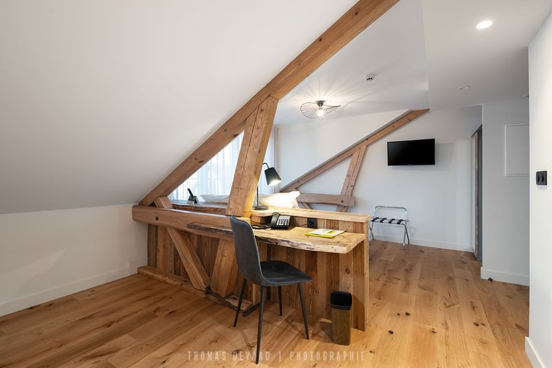 Au deuxième étage, laissez-vous séduire par une décoration chaleureuse inspirée de l’esprit chalet, mêlant bois brut et superbes panoramas vosgiens.